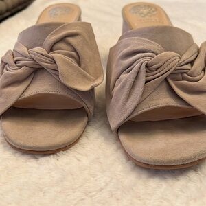 Vince Camuto Womens Beige Tan Neutral Bow Slide Sandals Size 8 Like NEW