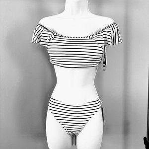 Vince Camuto Womens Bikini Set Stripes Ruffle Shoulder
