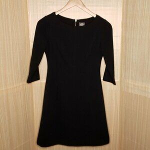 Vince Camuto women’s black ¾ sleeve heavy knit dress 6. Gently used condition. Zip back and has pockets. Measurements are: 17 ½” sleeve, 35” from shoulder to hem and 18” from armpit to armpit.