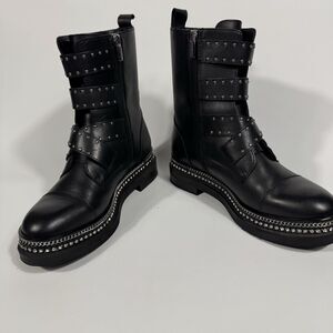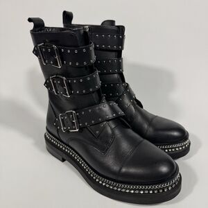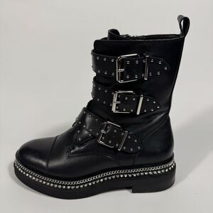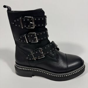 Vince Camuto Womens Black Eyelet Bling Maeva Block Heel Leather Bootie 8M Biker