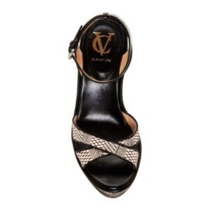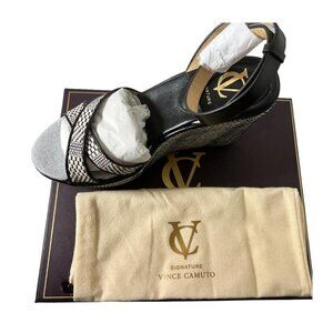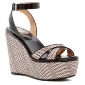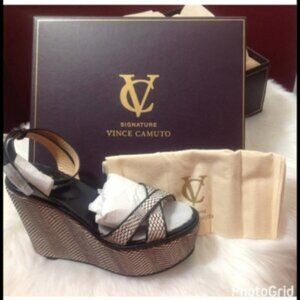 Vince Camuto Signature Womens Black and Ivory Woven Wedge Sandal Platform Shoes 9.5 NIB