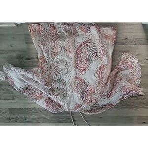 Vince Camuto Womens Blouse Paisley NWT M Ivory Peach Warm Tones Fall Flowy
