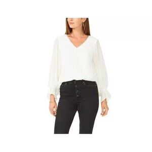 Vince Camuto Women's Blouse Plus Size Clip Dot V-Neck Top Soft Off White size 2X