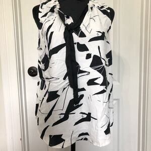 Vince Camuto Women's Blouse Sleeveless Tie Neck Detail Black White Size Medium