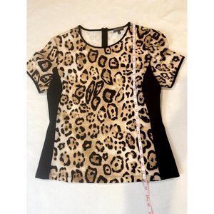 Vince Camuto Women's Blouse Top Cap Sleeves Leopard Print Black Cream Size Small