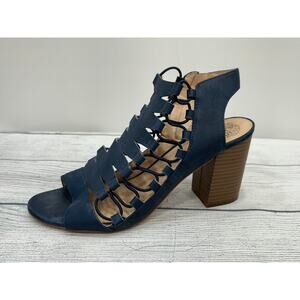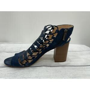 Vince Camuto Womens Blue Laser Cut Peep Toe Back Zip Heel Briaz Dress Sandal 10M