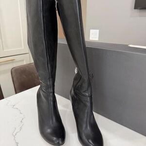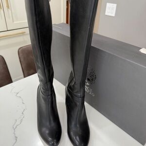 Beautiful Vince Camuto heeled boot, to the knee in black soft leather. Worn once. Excellent condition Style VO-MONICAI original price $229 Size 9.5 Heel 3 3/4"