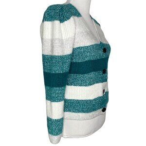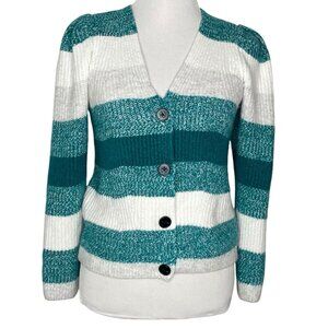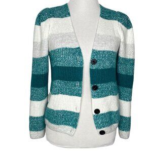 Vince Camuto Womens Cardigan Size Small Striped Knit Button Closure Teal Green