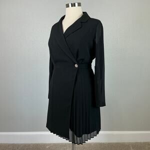 Vince Camuto Women's Cocktail Dress Size 14 Black Long Sleeved Tuxedo Wrap