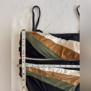 Colorblock design at front; mid-rise; moderate back coverage; lined