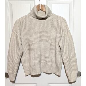 Vince Camuto Women's Cream / Oatmeal Patchwork Stitch Knit Turtleneck Sweater, S