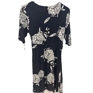 Vince Camuto Womens Dress Faux Wrap V Neck Short Sleeve Floral Navy Blue size 10