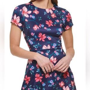 Vince Camuto Womens Dress Size 4 Cocktail Mini Fit Flare Blue Floral Office NWT