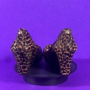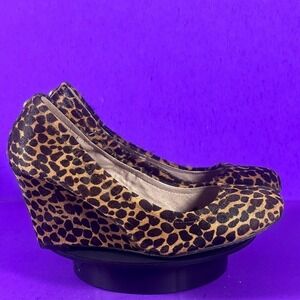 Vince Camuto Women's Elmay Leopard Print Calf Fur Wedge Heel Shoe Size 7