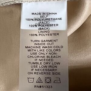 * Features: Stretch fabric, metallic sheen, lined, high rise, side zip