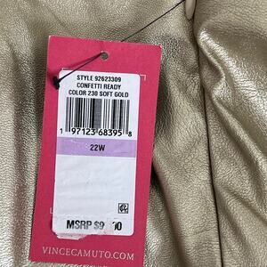 Vince Camuto Women's Faux Leather Pants 22W Gold Metallic Pull On Straight Leg