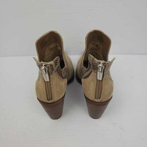 Vince Camuto Women's Gannilla Ankle Boots Brown Leather Zip Heel Snake Panel 6.5M