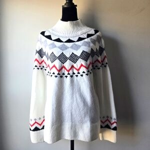 Vince Camuto Women's Geometric Mock Turtle Neck Pullover Sweater Medium