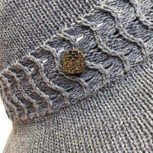 ** The Vince Camuto Women's Gray Polyester Knit Floppy Hat blends style and functionality with its wide, gracefully floppy brim and textured knitted design. A beautifully woven band with a decorative golden button accent adds a touch of elegance. Crafted from 100% polyester, it is lightweight, easy to pack, and comfortably fits most heads due to its one-size design. This neutral gray shade complements various outfits, making it a versatile accessory.