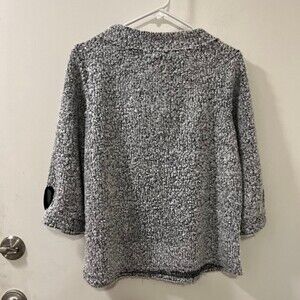 Vince Camuto Womens Gray White Textured Quarter Sleeve Pullover Sweater Sz Small