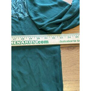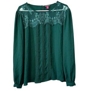 Vince Camuto Women's Green Lace Yoke Pin Tuck Pleated Front Blouse Top Size XL