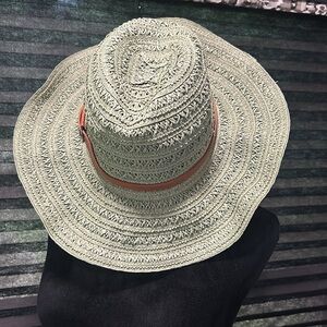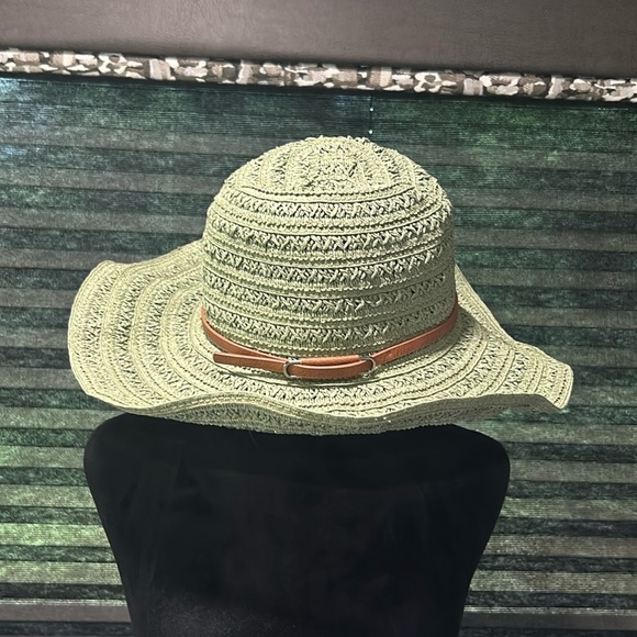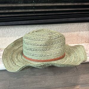 Vince Camuto women’s open weave cowgirl hat. Green with brown band. Paper/polyester. Wire rim. OS. NWOT