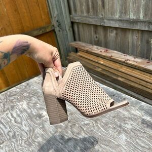 Never worn only tried on, small scratch on heel from being in closet & mark on leather as shown