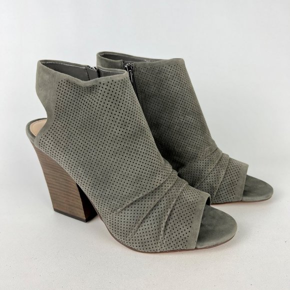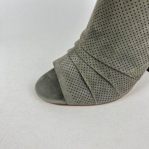Vince Camuto Kentvi graystone perforated suede ruched peep toe bootie sandal