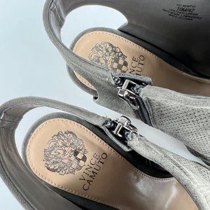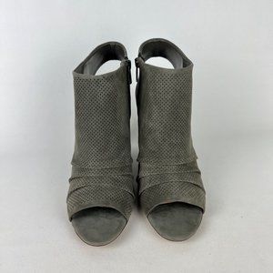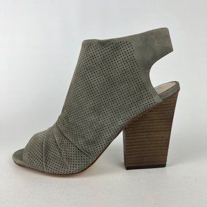 Vince Camuto Womens Kentvi Gray Suede Peep Toe Sandal Bootie Block Heel size 10