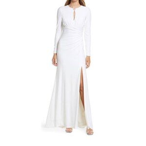 Womens Vince Camuto Long Dress Size 2 Color Ivory Long Sleeves With Crystal topped keyhole neckline (sku10)