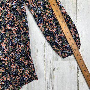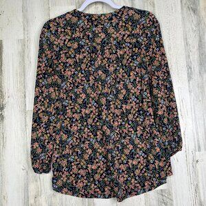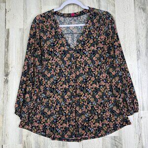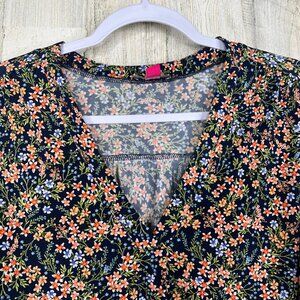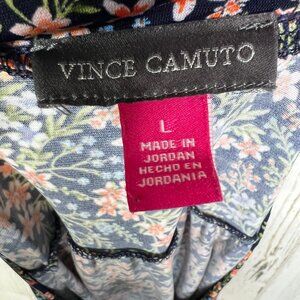 Vince Camuto Womens L Multi Floral Art Print Spring Blossom V Neck Stretch Top