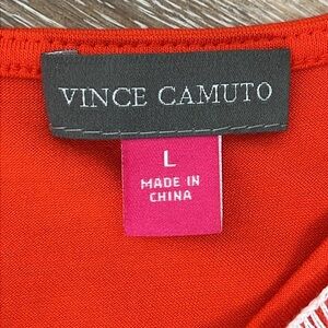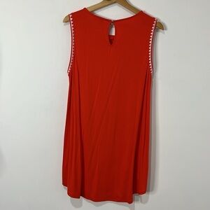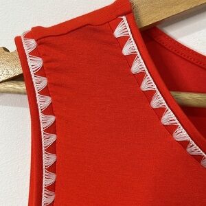 Vince Camuto Women's Large Red Orange Sleeveless Tunic Tank Top Embroidered Trim