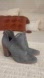 Stylish gray ankle booties, perfect for adding a touch of sophistication to any outfit. These feature a chic pointed toe and a comfortable block heel, making them ideal for all-day wear. The unique cutout detailing along the sides adds a fashionable edge, enhancing their visual appeal. A versatile choice for both casual and dressier occasions, these booties pair well with jeans, dresses, or skirts. Great for a casual day out or dressed up for a night out with friends. See images for wear. Good pre-owned condition. Pet friendly, smoke free home.