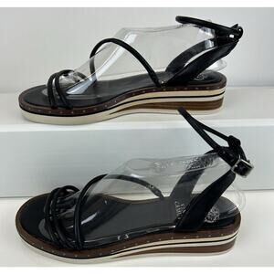 Vince Camuto Women's Lilo Wedge Sandal Bone Size 10 M Black Ankle Strap