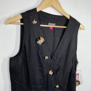 Vince Camuto Womens Linen Dress Size 12 Black Button Front Sleeveless NWT