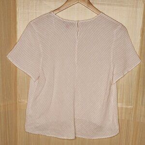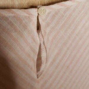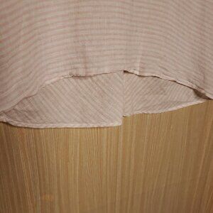 Vince Camuto women’s linen pink white stripe short sleeve top large. Gently used condition. Measurements are: 22” short and 21 ½" from armpit to armpit.