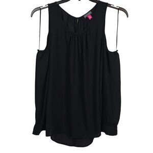 Vince Camuto Women's M Black Cold Shoulder Sheer Blouse Whimsigoth Party Top