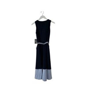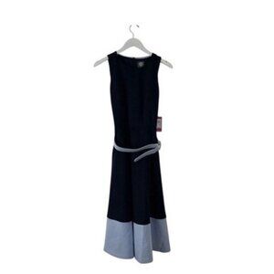 Vince Camuto Women's Navy Blue Belted A-Line Midi Dress Size 6 NWT