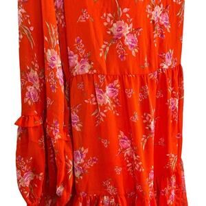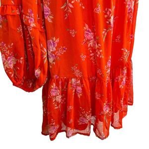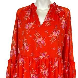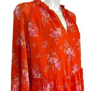 Vince Camuto Womens Orange Fairy Floral Lined Long Sheer Sleeve Dress Boho sz M
