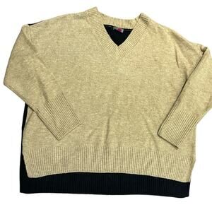 Vince Camuto Womens Oversized Size Medium Black and Tan V-Neck Sweater