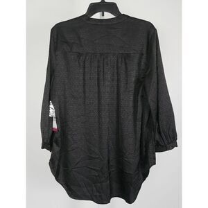 Vince Camuto Women's Plus Size Jacquard Patterned Blouse Rich Black 1X