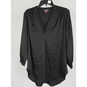A subtle jacquard patterned fabric elevates this plus size V-neck blouse from Vince Camuto. 3/4-sleeves High-low rounded hem Imported V-neck