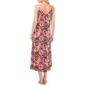 Product DescriptionVince Camuto Printed Tank Maxi DressSoftly tailored of satin printed with an ikat-inspired design, this vibrant dress features metallic-fiber stripes that add subtle sparkle to the style. The relaxed, shoulder-baring dress is crafted with a maxi-length skirt. Pair the one-and-done wonder with platform wedge sandals for a retro-chic look.