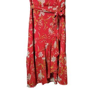 Vince Camuto Womens Red Floral Fairy Cottagecore Ruffle Surplice Belted Dress 0