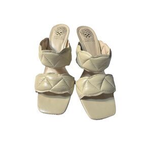 Vince Camuto Womens Renneya Slides Sandals Beige Double Strap Quilted 8.5M GUC