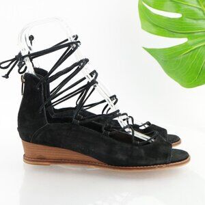 Vince Camuto Womens Rochela Sandal Size 9.5 Black Suede Ankle Lace Up Wedge Shoe