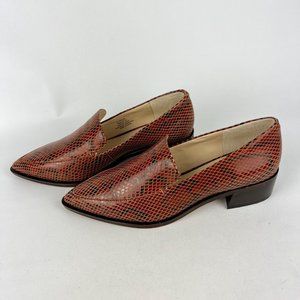 Vince Camuto Womens Satillie Brown Leather Snake Pointed Toe Loafer Shoes size 7