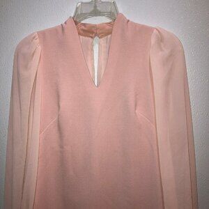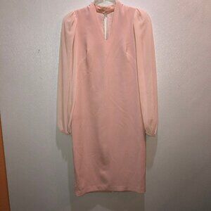 Vince Camuto Womens Size 0 Pink Crepe Long Balloon V Neck Sleeve Sheath Dress