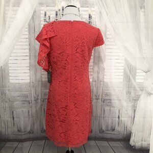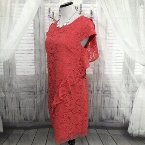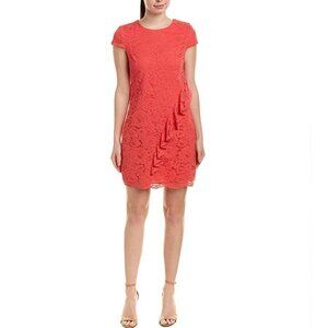 Vince Camuto Womens Size 10 Coral Red Lace Floral Shift Cap Sleeves Dress Formal