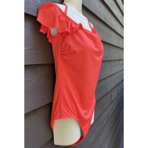 Vince Camuto Women's Size 12 Orange Red One Piece Ruffle Sleeve Swimsuit